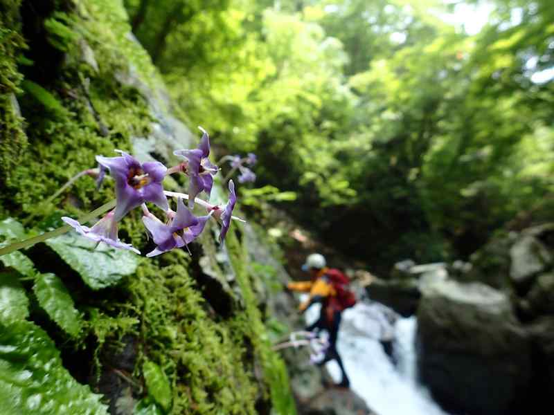 山梨県丹波山村にある一之瀬川の竜喰谷。水量も多く、「滝に始まり滝に終わる」といわれるほど多くの滝が懸かっています。一ノ瀬川に入渓してすぐの竜喰谷出合滝の水量に圧倒されましたが、イワタバコに励ませられながら歩みを進めます。