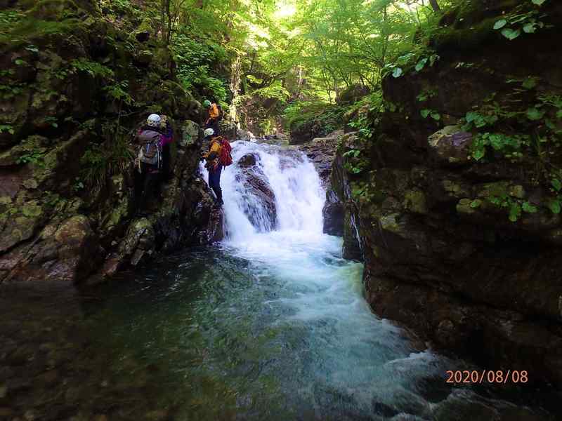 沢登りは、体力、泳力、登攀力といった山の総合力が求められるもの。ルートファインディング、リスクマネージメント、藪漕ぎにビバーク技術等も求められますね。もっと精進しなければ!!