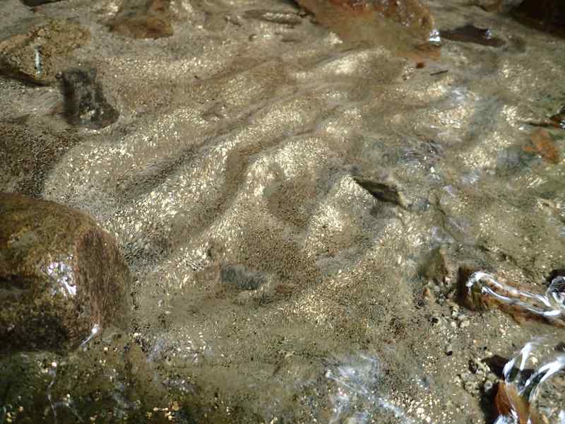 竜喰谷のナメ床は美しく、近くに金鉱があるためかキラキラと金色に光る砂が輝いていました。滝とナメが交互に現れ、釣り人が多いため巻き道もしっかりしているので、初心者から中級者まで楽しめる奥秩父の名渓でした。メンバーの方々に助けていただき楽しく遡行することができました。