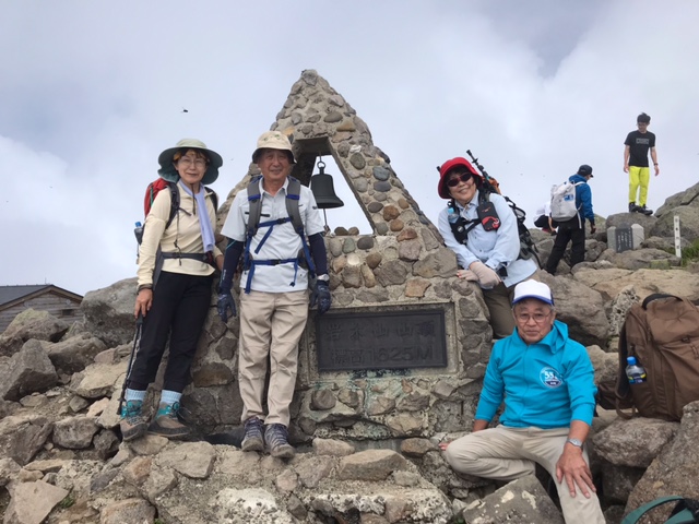 津軽岩木スカイラインを使って8合目までレンタカーで行き、更にリフトを使って、山頂をめざした。鳳鳴ヒュッテの所まで来て、Y子は待機。4人で出発。