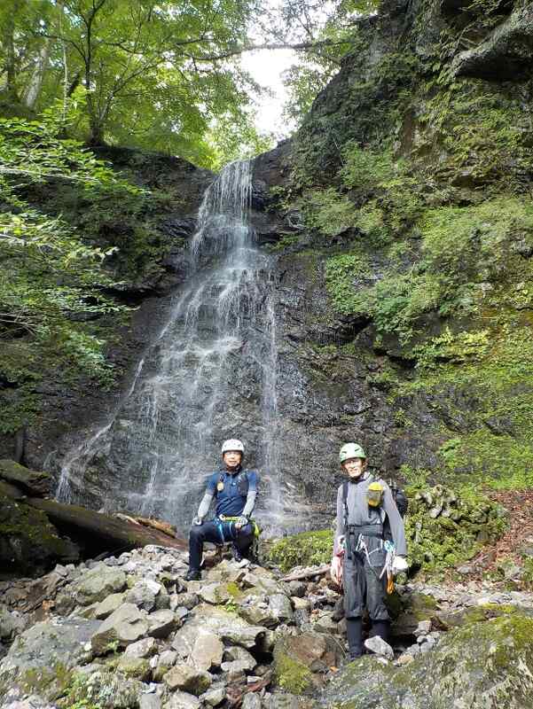 まだまだ残暑が続くなか下界では30度を超える真夏日に沢登りデビューの日がやってきました。気が付くとこの会に入会して約1年が過てました。入会希望のひとつに沢登りもあげていたのですがクライミングもロープワークも殆どやったことがなかったのである程度自分が安全に登れる技術が身につき万が一事故の場合も対応できないと迷惑がかかるしすぐには行けないなーという感じでした。