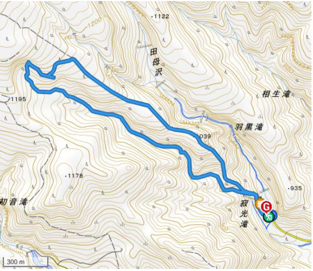 ■ルート 寂光滝そばの若子神社から入渓、Co.1100m付近で脱渓後、一般登山道で寂光滝まで戻る