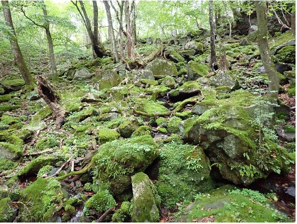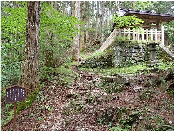 涸れてからは笹ヤブをいくらか漕いで一般道へ出る。多少、笹で滑るが踏み跡もあって歩きやすい。登山道をそのまま下ると入渓点のお社に戻る。