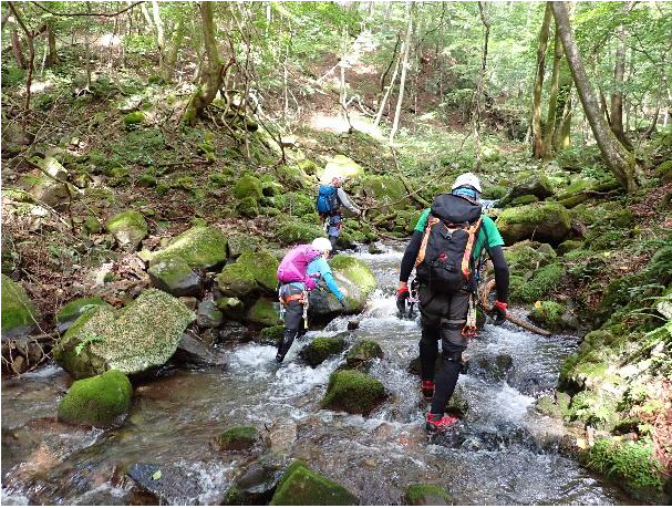 この辺の沢は急峻な中で、寂光沢は数少ないゆったりとした沢だそうだ。沢歩きよろしく、登攀的な要素は無いが、ヌメリと濁りで足元が捉えづらく歩きにくい。水線を行くよりも、それとなく周りを歩いた方が趣きがあって良い。