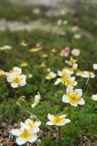 テント泊予定のグループが3:00起床で私達も早めに目が覚め、昨夜作っていただいたお弁当を、ご主人の心使いの温かいお茶やコーヒーを飲みながら食べることが出来た。4:40山荘出発。木曽駒ケ岳山頂5:15着。山頂からは北アルプス・南アルプス・御岳・富士山など360度の展望を楽しむことが出来た。宝剣岳の岩峰は鎖もあり、足場もしっかりしているが、経験不足を見てとれる人もおり、自分も慎重になった。岩場の山頂に立った時の爽快感は何とも言えない。稜線でもお花の先生Tさんに質問しながら、昨日は銀龍草を覚え今日はイワツメグサ・コマウスユキソウ・ミヤマキンポウゲ・ミヤマナデシコ・ハクサンフーロー・ヤマハハコと、たくさん教えて頂いたが、花の名前を覚えるのは苦手。でも綺麗なお花畑があちこちで見られ、苦しい山歩きも癒してくれる。岩場も多く、緊張したが楽しく歩いた。雷にも、後押しされ、木曽殿山荘へは予定より大分早く到着し、ビールで乾杯した。