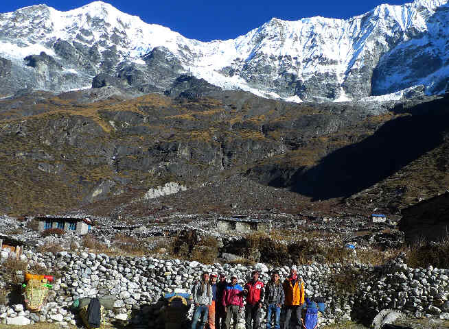 カトマンズから専用車で一日走りシンガティに着く。二日目は路線バスも走っている車道を一日歩きジャガットで泊まる。三日目も車道を半日歩きタマ・コシ・コーラを渡ってやっとトレッキング道に入る。標高差500mの急坂を登ってシミガオンに着く。やっと白い山が望めるようになった。四日目は尾根を下り樹林帯の中をロルワーリン・コーラに沿ってトラバース気味に歩く。五日目も谷をさらに進みベディングに到着する。村の背後に氷河を従えたチェキゴ(6257m)が望める。翌日は休養日で、スタッフはマンルン・ラへ行くための準備をする。午前中にさらに奥の村・「ナ」近くまで出かけ、姿の変わったチェキゴやバモンゴ(6400m)、カン・ナチュゴ(6735m)、チョプツェ(6689m)を眺める。