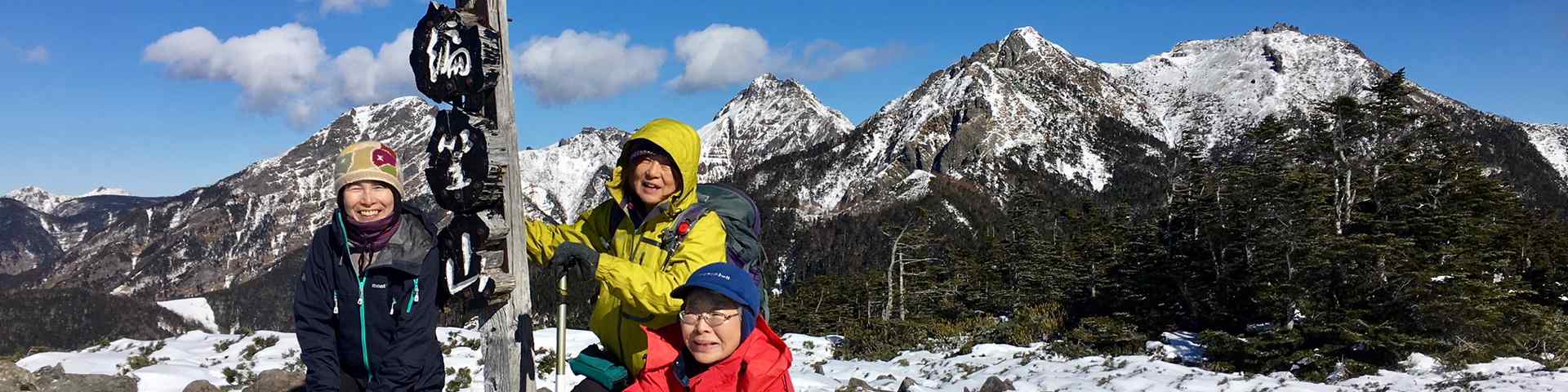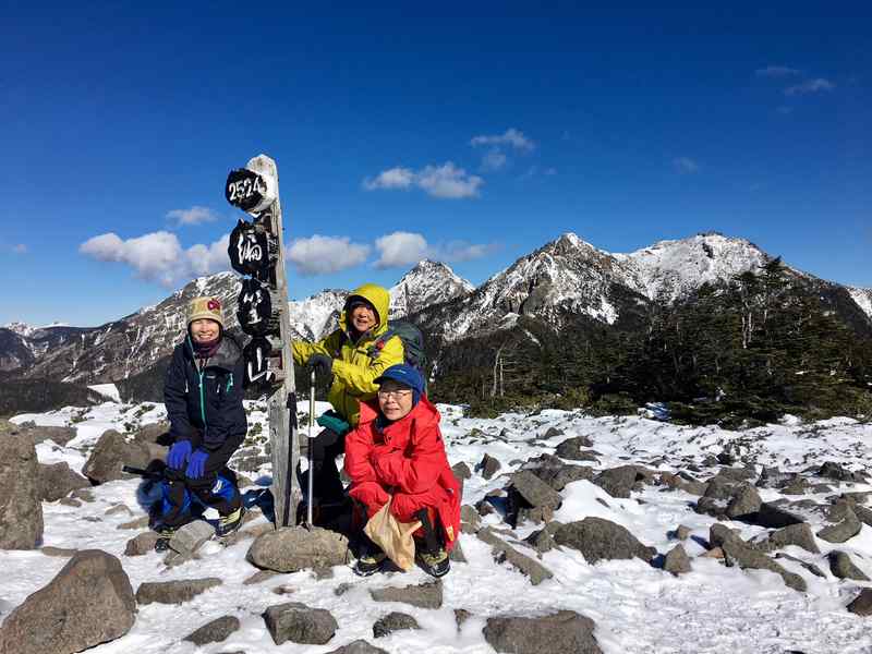 頂上直下のゴロゴロ岩の辺りからは、南アルプス(北部)、金峰山、富士山、中ア、御嶽山、乗鞍岳、槍穂 等大パノラマが広がって、晴れ女さん達に感謝です。
