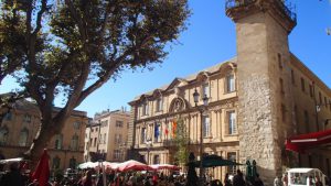 エクサンプロバンスの17世紀の市庁舎や古い通りを楽しみ、ミラボー通りのカフェで一休みして、屋台で昼食ゲット。やっとみつけた地下駐車場ROTONDEを、昼前だったか、出発する。運転手I田さんは、すでにマルセイユ市街をどう走り抜け、宿泊地へ到達するか緊張している。