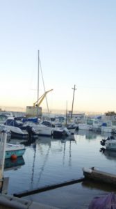 とにかく、3時までにマルセイユの南端港町の宿に着かなくてはいけない。キッシュやサモサを味わうまもなく、コーヒーで流し込み、前席2人は運転とナビに必死。後席はカードを止めるべく電話と格闘。いよいよマルセイユ市街。高速の看板とナビ見比べるもわからず、「そこ左」「いや右でしょ! しっかりナビしてください」、の運転手の静かな声が怖い。後席もナビ覗き込み、声が飛ぶ。「うるさい!こっちも必死なのよ!」。間違うたびにナビがくるくる回り、そこラウンド二つ目、バイクが前方からすれすれねじ込んできて、ブレーキ踏んだ。途端ドカン!奇跡的にバンパーだけで傷も確認できず。後続の運転手のお姉ちゃんは「ソーリー」とにっこり笑ってすり抜けていく。「ちょっと待って」とフランス語言えず。脇によって気を鎮める。その後も曲がり角間違えたり行き過ぎたりするも、ドライバーテクニックで、でかい車を路駐だらけの道を巧みに操作し、4時ごろ目的地に到着、ふ~。所有者の娘の友人という美人さんがお出迎え、英語で少しほっとする。ハーバー横の駐車場に車を入れ、買い出しに行く気になれず、その夜は近くのレストランとは名ばかりのごつい兄ちゃんたちがたむろするバーで食事。でっかいけどしょっぱいピザで食べきれず、残したら、「持って帰るか?」と意外と優しい。