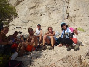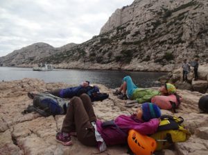 暑くてしばし水休憩。その間に、平日なのに続々クライマー参上。そうよね、マルセイユの都会から、一時間で来れるんだもの。