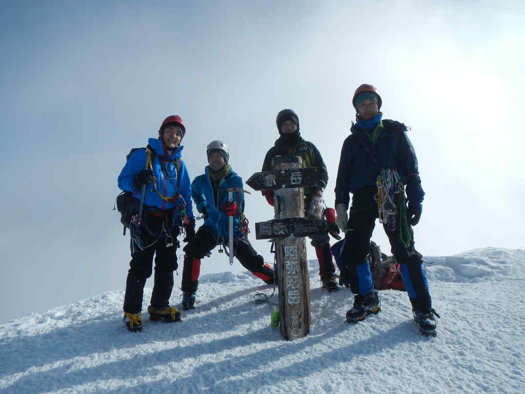 トップのH竜さんは、岩峰を登るため、インナーの手袋をしないで登ったとのこと。山行中はコンタクトにしている中ちゃんは、メガネを無くしたことに気付く。が、どこで落としたか不明。損失は大きかったが、充実した山行に満足した様子です。