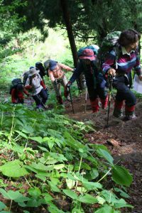 GW後半の4日から6日まで、新潟県の刈羽三山へK原塚さんリーダーの9人で行った。4日の朝、新潟の山へ登るのだからと、雪山山行を想定し、完全装備をして北上尾駅へ向かった。黒姫山へ行く予定が登り場所が分からず、急遽秋葉山に行った。標高340m。その後、河原塚さんの「道なき道を行く」訓練があった。小枝を踏みかき分け、木をまたいで、登ったり降りたりと道なき道を行った先には、満開の藤の花が綺麗に咲いている木を見つけた。その高台から降りようと降口を探すと道のようなものがあり、そして下山。夜、キャンプ場にてテント泊。自炊場があり、トイレもあって快適だが、ブヨが多かったのが難点。K原塚さんお手製の料理を食べ、その後の語らいも楽しかったが睡魔には勝てず明日からの山行もあって早々に就寝。夜中に、すごい雨音!5日、朝起きてみると雨は上がっているが、そこここに濡れた後。テントの中も湿っていた。この日は米山。標高993m。夜中の雨が嘘のように、よく晴れ渡った天気。空が真っ青。米山の頂上から日本海や佐渡がすぐそこに見えた。この日の夕食は惣菜を買って食べようということになり、スーパーへお買い物。パック詰めのお惣菜、巻き寿司や餃子や何やら、めいいっぱい買って、賑やかに夕食。でもね、何か温かいものが飲みたいとわがままを言って、河原塚さんからカフェオレのスティック袋をいただき、お湯を沸かして飲んだ。やっぱ、カフェオレだね♡ うまッ♪