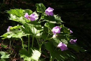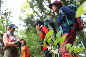 白根葵、天南星(テンナンショウ)、浦島草、二輪草、大葉黄菫、常葉錨草(トキワイカリソウ)、花筏(ハナイカダ)、山荷葉(サンカヨウ)、雪椿、猩々袴(ショウジョウバカマ)、越後寒葵(エチゴカンアオイ)、稚児百合(チゴユリ)、青木の花、楓もみじ類の花、朴乃木の花等など。
