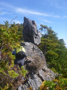 コースタイム: 赤石橋から小倉沢上流 300m付近(8:10)=1086(8:30)=稜線 1600 m(10:25)=狩倉岳(11:00)=狩倉槍ヶ岳(11:40)=1683m(13: 00)=白井差の稜線(13:25)=両神山(13:40)=下降点(14:00) =1389m(14:45)=上落合橋(15:20)=駐車場(15:50)