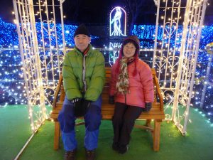 と思ったのだう)・・・『それから、帰りに相模湖のイルミネーションを観に行くから』と付け加えられた。その日の夜に計画書が送られ『信州峠→横尾山→信州峠』と書かれていて、横尾山ってどこ?・・・信州峠は、確か奥秩父の瑞牆山に長野県側からアクセスする道路だったのでは?と思い、地図を広げたら『あった』。前日に、地元に問い合わせたら『信州峠は昨日雪が降ったので、路面凍結意・・・登山も当然』とのこと。軽アイゼンと防寒着をリックサックに詰め込む。この時期の標高 1818m だから、そこそこ寒いだろうが、登山口から標高差も少なく大した事は無いだろうと始めは思った。でも、途中のカヤトの原から先は、「これでもハイキングコース?」と思う所もあり、にせのピークにだまされながら、慎重に登った。山頂も葉が落ちた為か、北側も木の間から展望が効いた。でも残念ながら八ヶ岳は稜線部分が雲の中だった。南側には、北岳から連なる白峰三山が鳳凰三山の向こうに真っ白に見える。甲斐駒は、麓から山頂までの全容が見えるが、急峻なので真っ白にはならない。金峰山は山頂部だけ白い。瑞牆山は一番近くに見えるが、この山は麓の黒森から見上げた方がかっこ良い。風も少ない、のどかな山頂でお弁当を食べ、「下山だから気を付けてね」と声をかけ、慎重に下山。帰路は道の駅で御土産を買い、予定通りに相模湖のイルミネーションを見物して、今日は綺麗なものをいっぱい見る事が出来た。報告者(SK)