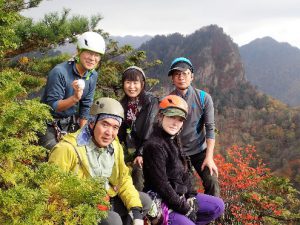 バリエーションハイキング、 略して「バリハイ」シリーズで ある。 以前、山と渓谷社から発刊さ れていた、打田鉠一氏著作の「ハ イグレードハイキング」。関東 地方在住の歩き二ストである私 にとってバイブル的な存在だっ た。その後書店の店頭には、い つの間にかこの良書も、並ぶ事 がなくなってしまい、一冊所蔵 しているにも関わらず、なぜか 寂しかった。最近、打田氏がハ イグレードハイキングの、続編 的な著作をなされたのを知り、 中身も確認せずに購入してしま った。 「薮岩魂」である。来夏、 一度は登りたいとかねがね思い 描いていたルートへ、トライす る好機に巡り会う事が出来そう だ。まぁ~私自身の今後のトレ ーニング次第という条件付きだ が、素晴らしい仲間と同じ視線 で目標への径を歩む事が出来た ら、なんという幸せだろう。 十数年前、当時「山岳渓流会 岩遊」のリーダー部長だったM 本達也さんの折角の有難いお誘 い、岩遊パーティメンバーとし ての北又・・。当時お世話にな っていたプロガイドの先輩S藤 博さんが遭遇した落石事故、そ の後始末のお手伝いで、北岳バ ットレスへ行く日程と、全くバ ッティンクしてしまい涙を飲ん だ。技術を教えて貰う代償とし て、アシスタントをします! と誓って、充実した日々を過ご させて貰った。S藤先輩を裏切 る訳にはいかなかった。再び訪 れた憧れのルートにトライする チャンス。だからこそ今、充実 した山をたくさん登っておきた い。山ヤの感覚に戻りたい。フ リークライミングの目標を見 失う筈は無いが、今は山! さて北稜。狭い林道を上がり 赤岩橋手前のスペースに駐車。 いえ バリエーションハイキングとは 、懸垂ポイントが複数あり、 ルートロスによるロープ出しも あり得るので、全員ハーネスを 装着した。林道を少し戻り「く りみ橋」の掛かる沢の左岸から 入山。踏み跡を追い、それが消 えれば獣道か否か判別もつかぬ 地形を読んで進む。隣の赤岩岳 から赤岩尾根へ、三十年少しの 前、ドキドキしながら初めて登 ったことを思い出す。最近の赤 岩尾根は、ルート明瞭、岩場も 剥がれるものは全て落ちてしま い、実線登山道に近い状況だが、 当時の赤岩尾根は本当に解り辛 かった。三十年余りを経て、ま たこんな楽しいルートに巡り合 えるなんて!北稜は、赤岩の 様な岩場は少ないが、ザレが不 安定と感じる。手掛かり足掛か りとなる潅木が、枯れる寸前の ものが多く、岩ではなくザレな ので、潅木が薄くなると、今後 少し難しくなるかな。今回参加 したメンバーもきっと北稜が楽 しかったに違いないと思う。楽 しく充実した私の山の一ページ。 仲間の真剣な表情の奥にあるワ クワクしている笑顔が見えるよ うだった。