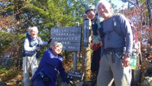 六時過ぎに尾ノ内渓谷の駐車場を歩き出す。油滝までは「遊歩道」ということになってはいたが、全然遊歩道という感じではない。結構ハードな登山道でアップダウンがそれなりにある。先頭を歩くH竜さんは「俺はリハビリ山行なんだから」と言いつつも、両手ストックで滅茶苦茶早く歩く(油滝までは道がしっかりしているだろうから早く歩きたかったとの本人弁)。むしろ最近時に足首を捻挫したH谷川さんの方がゆっくり歩いている。油滝は高さ十m位のナメ状の滝で、岩がテカテカして見えた。だから油滝という名称なのだろか。ここから先は一旦沢筋を離れ、右側の山腹をテープを頼りに急登を登る。もう沢からは完全に離れたかなと思ったらトラバースしてまた沢に戻っていく。途中に、今年立てられた「八日見山道」のポストがあった。ようかみという呼び方は、りょうかみの別名かもしれない。沢に戻ったので、そのまま沢筋を行くのかと思ったらさらにトラバースしながら斜上を繰り返す。事故は九時半過ぎに発生した。稜線まで後少しという標高1450m位の所の急勾配のリッジ状のところで、私は目の高さにある飛び出している木の根っこを両手で掴んでいた。その姿勢のまま、右脚を踏み出そうとしたところ、足場が崩れて一時的に両手で掴んでいた木の根っこに全体重を預ける形になった。そうしたところ、木の根っこが動き、その上に不安定なバランスで乗っていた人の頭大の岩が落ちてきて私の左肩を直撃したあと、谷筋に落ちていった。しばらくは激痛のため、全く歩けなかった。気を取り直して十時前に稜線にたどり着く。ここには龍頭神社奥の院の小さな社殿があった。私の左腕は痛くて肘から上に腕が上がらない状態だった。このまま予定通り天武相尾根を辿って天理岳に行き着けるか? 協議した結果、八丁峠を経て坂本の方まで下ることにした。つまり敗退である。赤線ルートとはいえ、八丁峠までの道も結構なアップダウンだ。いきなり最初からロープで確保して貰いながら鎖場を下った。その後は先行するK藤さんのあとを追いかけながら空身で歩き、八丁峠まで歩いていく。途中何カ所か景色が良いところがあった。赤岩岳までの稜線の向こう側には、冠雪した八ヶ岳が秀麗な姿を見せている。八丁峠まで下り、ここから最多院ルートの八丁隧道脇の駐車場に下ることとした。十三時前に駐車場に下り、他の登山者の車にK藤さんが便乗させて貰い車を取りに戻った。しばらくは駐車場で待っていたが日陰で寒いので、我々も車道を下り日が当たるところで日向ぼっこをしながらK藤車を待った。帰り道に東松山で緊急の整形外科を受診したところ、全治三週間程度の肩関節剥離骨折と診断された。今回はパーティメンバーに助けられた。また、他の山行から病院に駆けつけて貰った町DさんS々木純子さんにも感謝感謝。目的地に到達できなかったが仲間との絆を実感できた一日でた。 (H高 記)