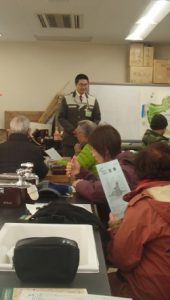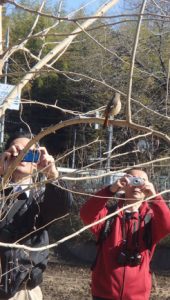 2月4日(日曜日)県連の中部ブロック交流会で北本に行ってきました。風もなく天気に恵まれて9時30分に北本自然観察園に到着、大宮労山からは10名の参加です。最初に学習センターで職員からの説明、双眼鏡の使い方から、日本の野鳥の種類とか、なんでも日本には600種の鳥、埼玉では330種が生息しているとの事でした。早速双眼鏡を首に下げて公園内を巡りバードウォッチングに出かけます。職員に連れられて目を凝らし鳴き声に耳を澄まして双眼鏡をのぞく、双眼鏡のコツは、目視したら目を切らずそのまま当てるのが良いそうだ。早速「ルリビタキ」がいたとの事。園内を巡り様々な鳥がいたようだが、私にはその内5・6羽くらいしか確認できなかった。野鳥観察も腕がいる。学習センターに戻って、その日に観た鳥の名前が記され13種類の鳥が観察されたと報告、ちょっと驚きでした。その後歩いて30分ほどの北本野外活動センターに移動して昼食、美味しいすき焼きを戴いて皆さんと交流、缶ビールが喉に染みました。