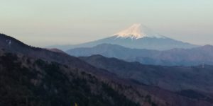 今回のもう一つの目的は日本アマチュア無線連盟(以下、略してJARL)のコンテストに参加する事だった。ヘッドライトを点けて上日川峠を未明に出発した。大菩薩峠までは山小屋の軽自動車が登れる道なので暗くても大丈夫だ。途中のベンチは凍っていたので氷点下なのだろう。寒いのでトイレのハエもお休みの様で、それは助かった。大菩薩峠でちょうど日の出を見られた。北に少し登ると富士山が綺麗に見えた、南アルプスも。