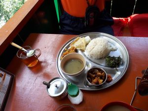 15時45分ホテル到着。シャワーを浴びるがお湯が出なかった。夕食はネパールセットのダルカリを食べる。ダルカリは他でも何回か食べたが、それぞれ味は違うも美味しかった。