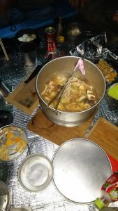 テント場に戻ってエスパースに積もった雪をかき集めると