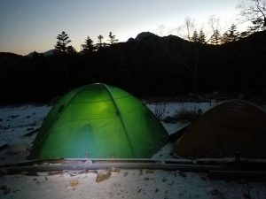 ところが夜は冷え込んでテントも凍りつき