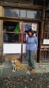 大嵐山で繋がらなかった携帯で日光沢温泉に電話をかけ現状を連絡、登山道も暗くなってきてヘッドランプを付けて下る。雨足が強くなって雨具を装着、最後の試練だったが暗い沢の中に灯りが見えて日光沢温泉に無事に到着。宿の柴犬が元気にご挨拶、ちょっと油断もあったが、着いてみればとても勉強になった雪山でした。