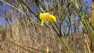 手掛かりになりそうな草をまとめて掴み登る。エニシダ(S水さんに教えてもらう)の黄色い花に癒されるどころではない。
