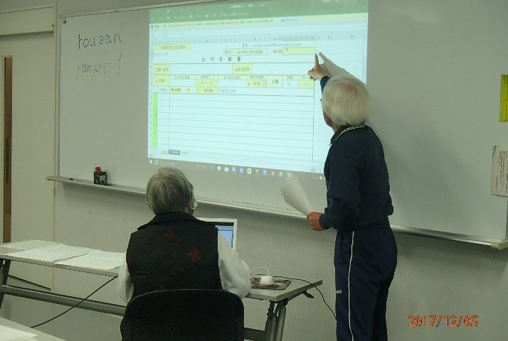 レジュメを基にして、大宮労山ホームページ会員専用の計画書をダウンロードし必要事項を記入する操作を教えていただきました。実際に会員がパソコンを操作しながら行いました。