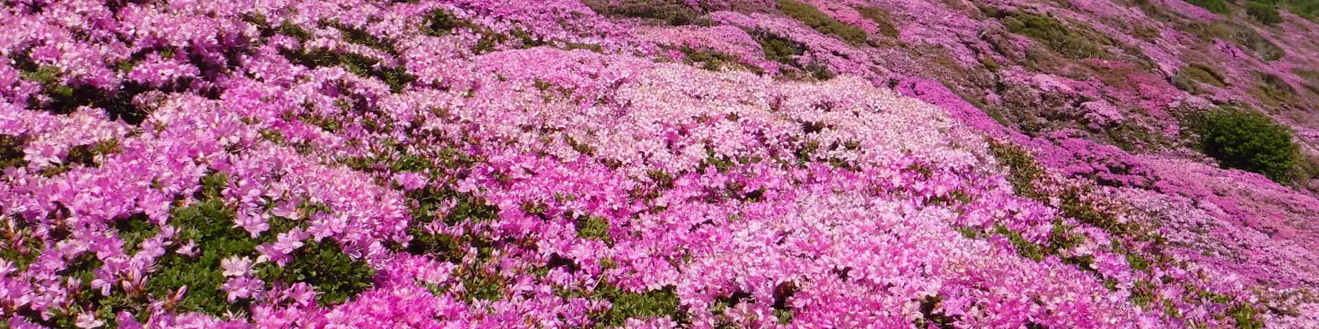 5/24 長者原から入山し、坊ガツルでテントを設営、大船山に向かう。尾根はミヤマキリシマが3~4分咲きというところ、まだつぼみが多い。花に引き寄せられて大戸越に。平治岳への尾根、山頂からの西尾根が素晴らしい。今年は一週間ほど例年より早く、幸運にも満開に出会うことができた。