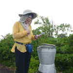 そこに朝あった女性軍がいる。不要な荷物を置いて頂上へ行くと のこと。日帰り登山で何を置いていくのか不思議。先に行く。T嬢山で追い越されることはあっても追い越すことは今まであっただろうか。本人もびっくり。頂上直下は急な岩場。所々ロープが張られてあったが結構な岩場だ。慎重に上り頂上かと思いきや右に50m位尾根筋を行った所が頂上。頂上は360度のパノラマだが天気が良い割に山々が霞んで見えない。気温上昇の為か。本当なら越後駒、守門、七つ岳、尾瀬の山、日光の山が見えるはず。仕方ないか。40分位堪能したら女性陣が上がってきた。神奈川から3年越しの朝日岳で宿にもう1泊し帰るとのこと。金持ちだ!下りもとにかく暑い。ここで大変なことが!T嬢が2Lの水が200cc位しかない。自分も同じ位しかない。なんとか三吉ミチギの水場まで持たせなければ。少しずつ飲むが体がカラカラになってくる。何とか水場に着くと水がおいしいこと。帰りは只見町の深沢温泉に入りおいしいそばを食べ帰宅する。感想7月の会津朝日岳は計画しない方がいい暑さで死ぬ、残雪期だね!