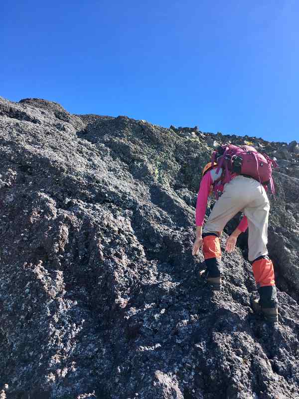 溶岩流の残骸のようなルートで、岩稜、傾斜の緩いスラブ、ザレのミックスです。