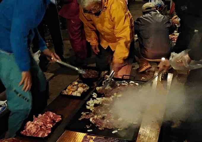 一日目には、小沢岳、鹿岳、黒滝山、中里の岩場の四つの山行が組まれ、二日目には、碧岩、中里の岩場の二つの山行が組まれました。夜には一同会して大バーベキュー大会で盛り上がりました。食べきれるのかしらん? という大量の食材、ぺろりと平らげ、新人もベテランも交え楽しいひと時を過ごすことができました。