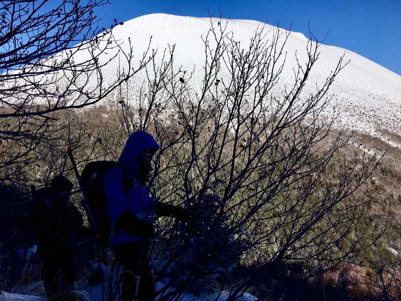 既知のルートではあるが、鬱蒼とした灌木帯をGPSを頼りに右往左往しながら、剣ヶ峰の北東尾根の基部に到達した。