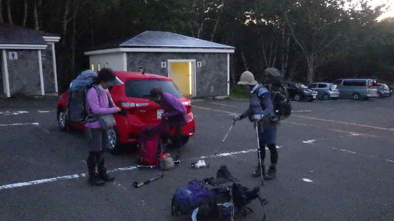 夜が明けたばかりの笹ヶ峰登山口駐車場を出発。