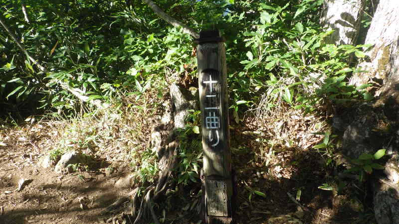 歩行再開すると、ここからは山腹を巻きながら登る急登だ。しばらく歩いて行くと十二曲がりの標識が。本当に十二のターンがあった。登っている途中で朝日が当たる。