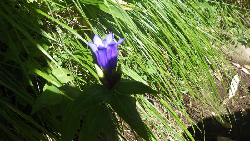 少し足を進めて振り返ると、池糖に空の蒼がよく映えている。ヘリコプターは相変わらずせっせと往復している。