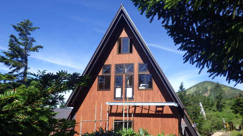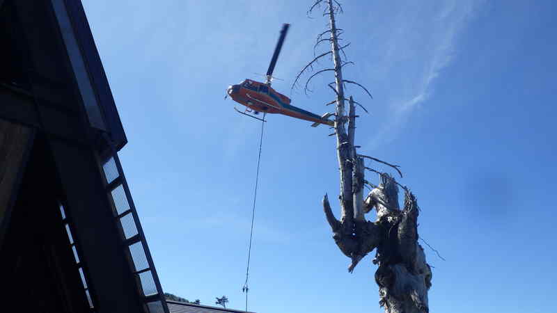 そうこうしているうちに高谷池ヒュッテに到着。新館を建設中だった。ヘリコプターは建設廃材を荷下ろし中だったことが判る。