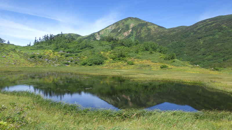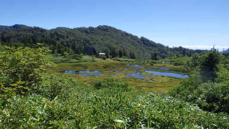昨日に引き続き、いつまでいたいがそうもいかない。往路を引き返して黒沢池ヒュッテに戻り、テントを撤収して下山。この時点で予定より1時間遅れだった。黒沢池の湿原もきれいだった。