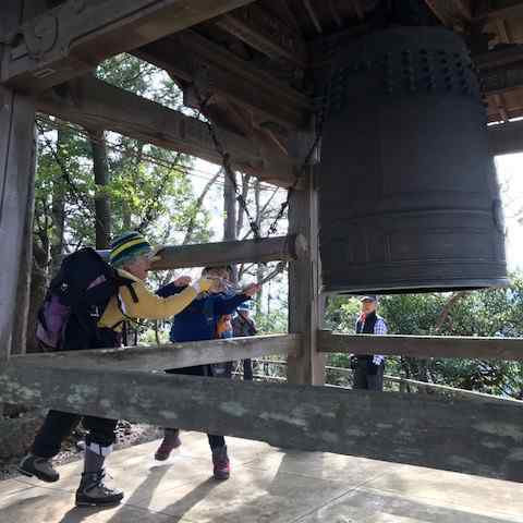 「子の権現」が近づくと、あの「ゴーン」というお寺の鐘が小さく響いて、もうすぐゴールなんだと安堵した。大きな仁王様に迎えられ、ヤレヤレと一息ついた。11時30分到着。もう健脚ドンドン組はゴールしているようで、姿が見えない。お寺の境内をあちこち見学しているようだ。すると、あの「ゴーン」という音が一際大きく、ドーンとお腹に響いた。「今の、Yきちゃんよ!」と、仲間が言う。孫が飛んできて、「おばあちゃん、聞いた? 今の音、僕だよ」やっぱり、あの体だからね、納得。「おばあちゃんもやってみれば」と言われ、急な階段を上ることになった。3回来ているが一度も鐘を鳴らしたことがない、それに凄い急な階段。