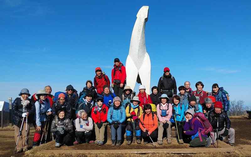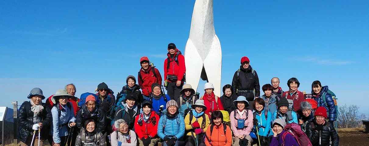 2020年2月2日、素敵に2が並んだ当日は真っ青な空に雲一つない上々のお天気、早朝の中央線からは輝く富士山もみえました。快晴の天気に6キロのぜんざいの重みも感じません。31名の参加者ですが、班行動は各班長に、装備担当、写真、司会も分担したので、気持ちはとても楽になりました。
