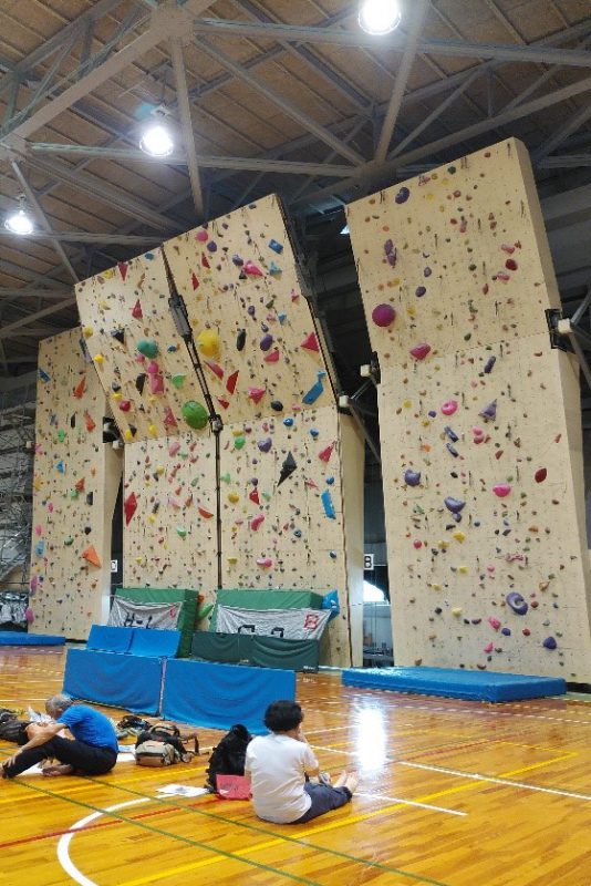 加須市市民体育館は2007年に世界の名だたるコンペクライマーがその技を競って戦うWCも開催された伝統のあるクライミングウォールがある施設として知られていて、私もその大会に一般の観客として参加して感激したことのある壁です。ミーハーな私はキム・ジャインのサインをもらって悦に浸っていたことも思い出します。そんな伝統のある壁でクライミングが出来て、コンペが出来るなんて思いもよらなかったが、あれよあれよ! と計画が進んで開催にこぎつけた。