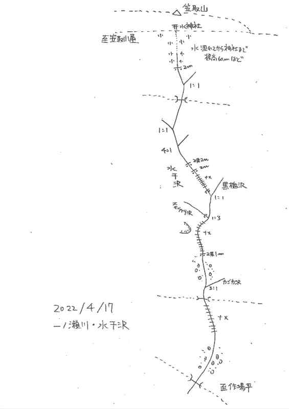■ルート 作場平8:55~入渓9:10~二股10:35~水神社11:40~笠取小屋~作場平14:00