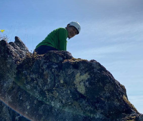 じゃ降りよう。山頂の次には大岩。回り込むと登れるが丁須の頭のその頭とはまた別の高度感がある。(あそこは怖かったぁ)