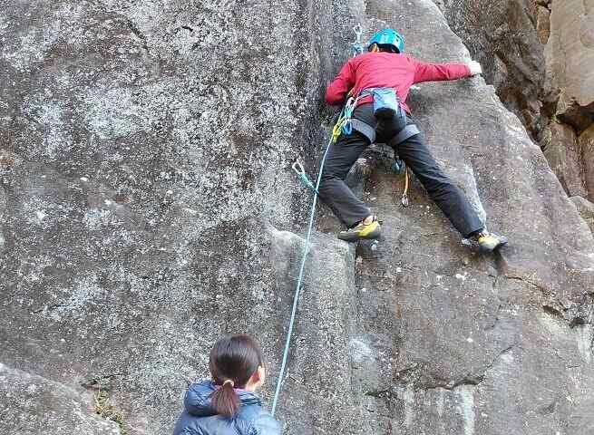 さて翌日の3日は正面壁でクライミング、T羽さんが超早めの到着ですでにトップロープをセットしてくれている。遅まきながら前日組も7時に出発して正面壁の『かずえちゃんとしおちゃん10.d』にトライして後続隊の3人の山の会の仲間を迎える。アクシデントがあって到着が遅れたが、当日の正面壁は空いていて、思い通りのルートが登れます。『あもんブライダル10.b』『おせっかい5.8』『サムシングニュー11.a』『ジムシー10.c』『いつか10.c』等思い思いのルートにチャレンジ出来ました。