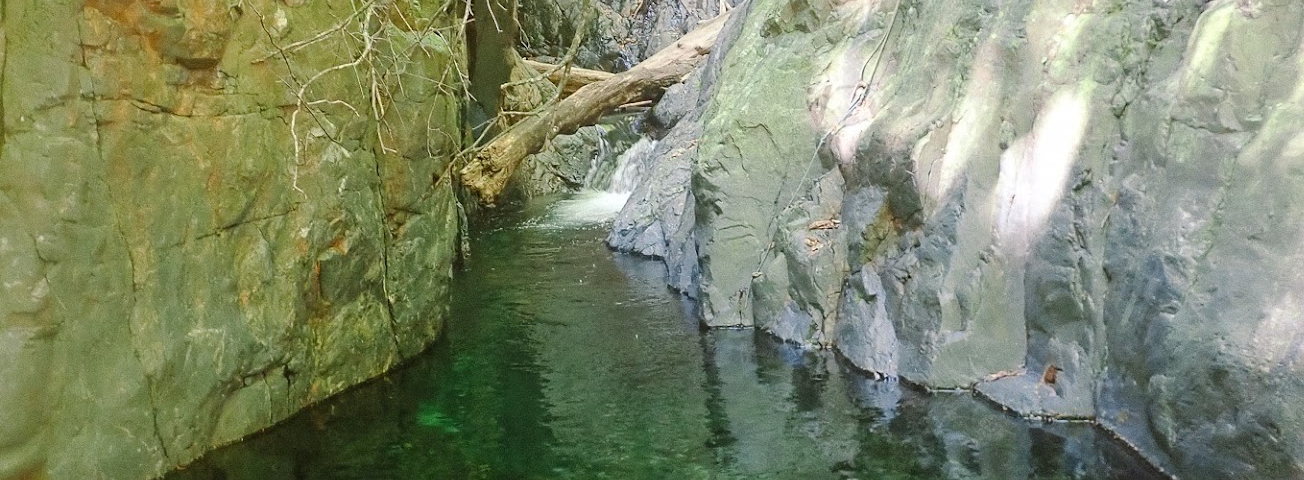 千苦の滝を越えて進むとゴルジュ帯になる。深いと聞いていた山女魚淵はザックピストンで難なく突破した。足のつかない箇所は思いのほか短く少し拍子抜け。水流も強くなかったのでこのコンディションなら泳いでも突破できそうだった。