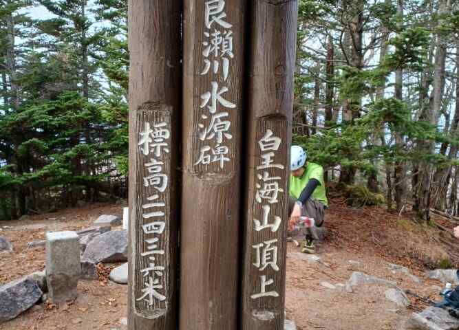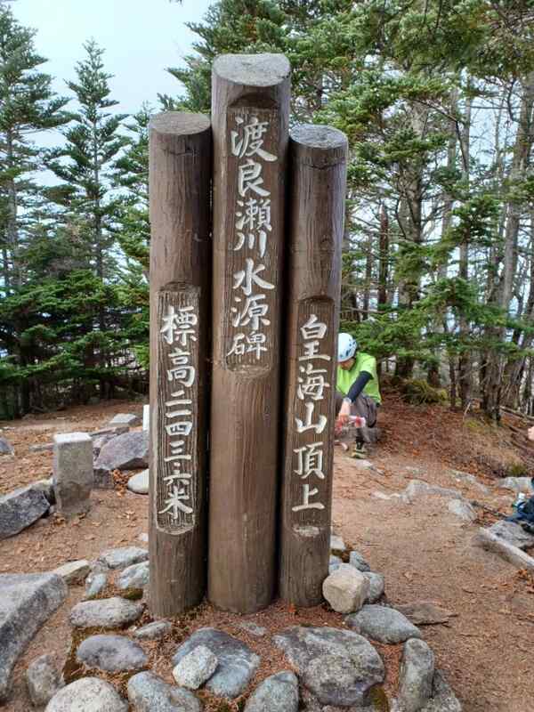 ここから皇海山もなかなか遠い。10年以上前に行ったときは、まだ林道が閉鎖されていなかった皇海橋からの不動沢コース。落葉松林が美しいきれいな森の印象でした。今回は山頂落葉松なし(笑)。