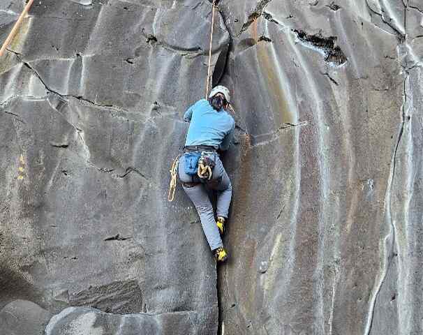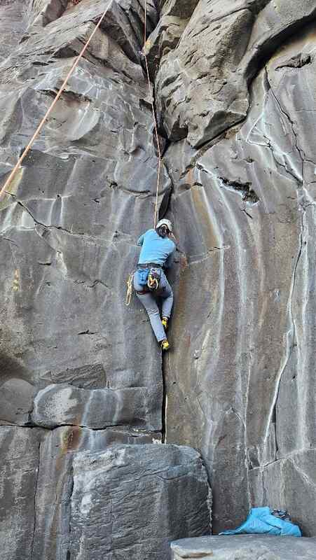 午後からは南側のパープルシャドーにトップロープ張り、豪快なクラック登りを楽しんだ。カムの設置はトップロープで試した方もいたが、カム操作、クラックリードはまたの機会に必要かと思う。