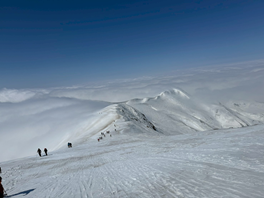 頂上小屋前で滑走班と山頂登頂班と別れ、私は登頂班。登頂といっても1分程度の歩き(笑)