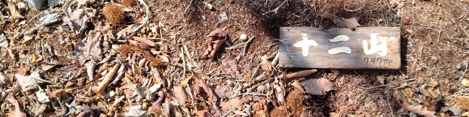 下山は椚田峠から林道を下る。途中斜面を無理矢理登り尾根道に復帰する。キツい急坂を登り797(十二山)に到着。群馬では十二様という山ノ神信仰があり、そこから山名を取ったのだろうか。